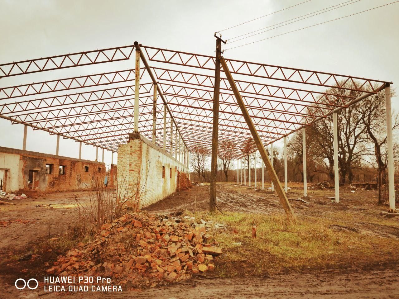 У більшості випадків на території сільського господарства є старі корівники та інші приміщення, ми пропонуємо переробити їх під склади методом підняття стін і монтажем нового метало перекриття, також виконуємо заливку підлоги.